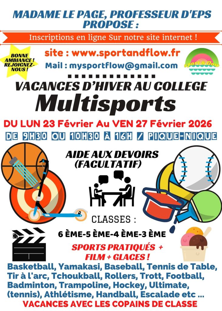 NOUVEAU ! Rejoignez nous dès la fin des cours les sportifs ! Stage vacances multisports avec les copains cm1, cm2, collège 6ème, 5ème, 4ème, 3ème