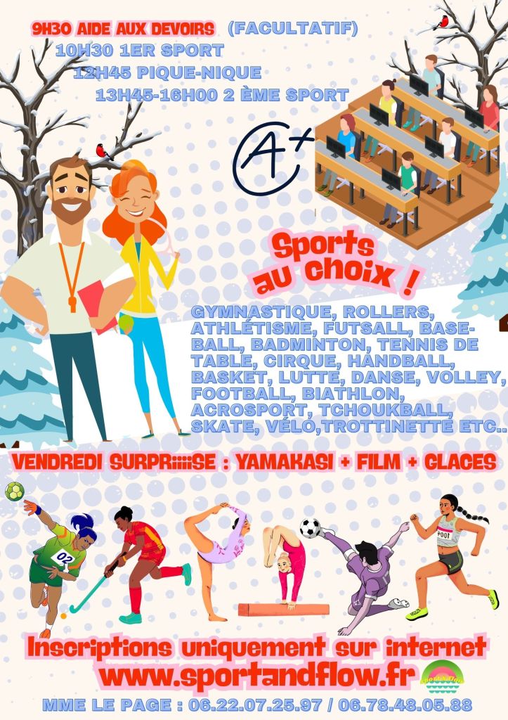 Aide aux devoirs 9h30 (Facultatif) – Sport 10h30-16h – Pique-nique
