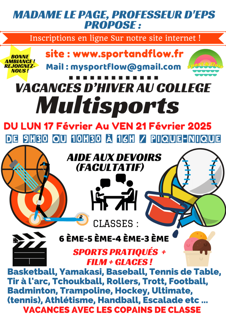 Pendant les vacances, nous vous offrons un concept « Aide aux devoirs/vacances multisports » dans votre établissement Scolaire à l’IND.
