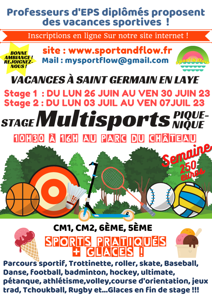Le stage Sport&Flow s’est déplacé et s’adapte aux vacances de vos enfants dès la fin des cours en veillant au respect du protocole sanitaire en vigueur