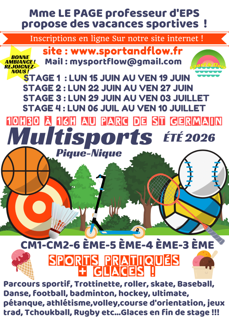 Le stage Sport&Flow s’est déplacé et s’adapte aux vacances de vos enfants dès la fin des cours en veillant au respect du protocole sanitaire en vigueur